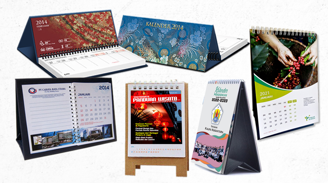 Kalender merupakan salah satu media promosi yang cukup efektif, hal ini dikarenakan kalender yang terpasang sepanjang tahun dan hampir dilihat tiap hari, sehingga kemungkinan pelanggan anda untuk mengingat perusahaan anda dan produk yang anda tawarkan sangat besar. Salah satu kelebihan kalender meja adalah menjadi salah satu alat promosi dekoratif yang belum bisa tergantikan oleh smartphone.