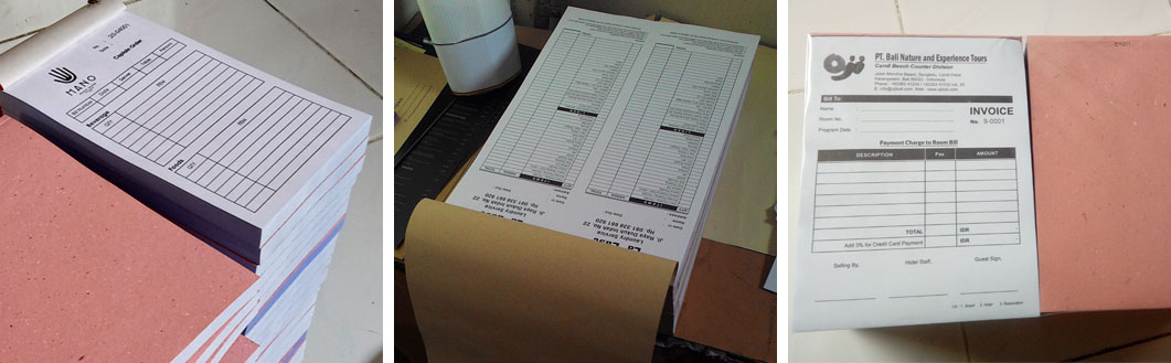 Ukuran jenis nota bervariasi mulai dari A4, Folio, 1/2 Folio, 1/3 Folio, 1/4 Folio, 1/6 Folio atau bisa juga sesuai dengan permintaan ukuran klien, begitu juga dengan jumlah kertas rangkap atau duplikasinya. Kertas yang sering di pakai adalah carbonise atau NCR, Kelebihan menggunakan kertas NCR adalah tidak direpotkan pemakaian dengan menyelipkan karbon, dimana kertas ini sudah mengandung karbon untuk salinan rangkapnya. Mediawarna bisa membantu kebutuhan anda untuk mencetak serta mendisain bentuk nota yang unik dan elegan....